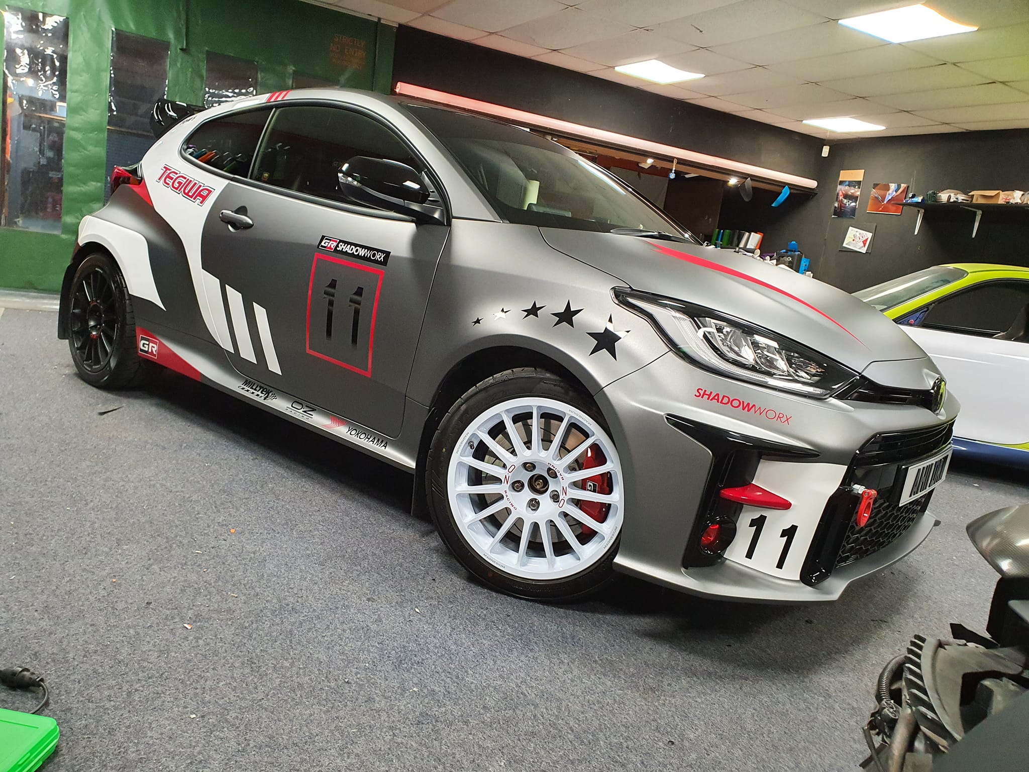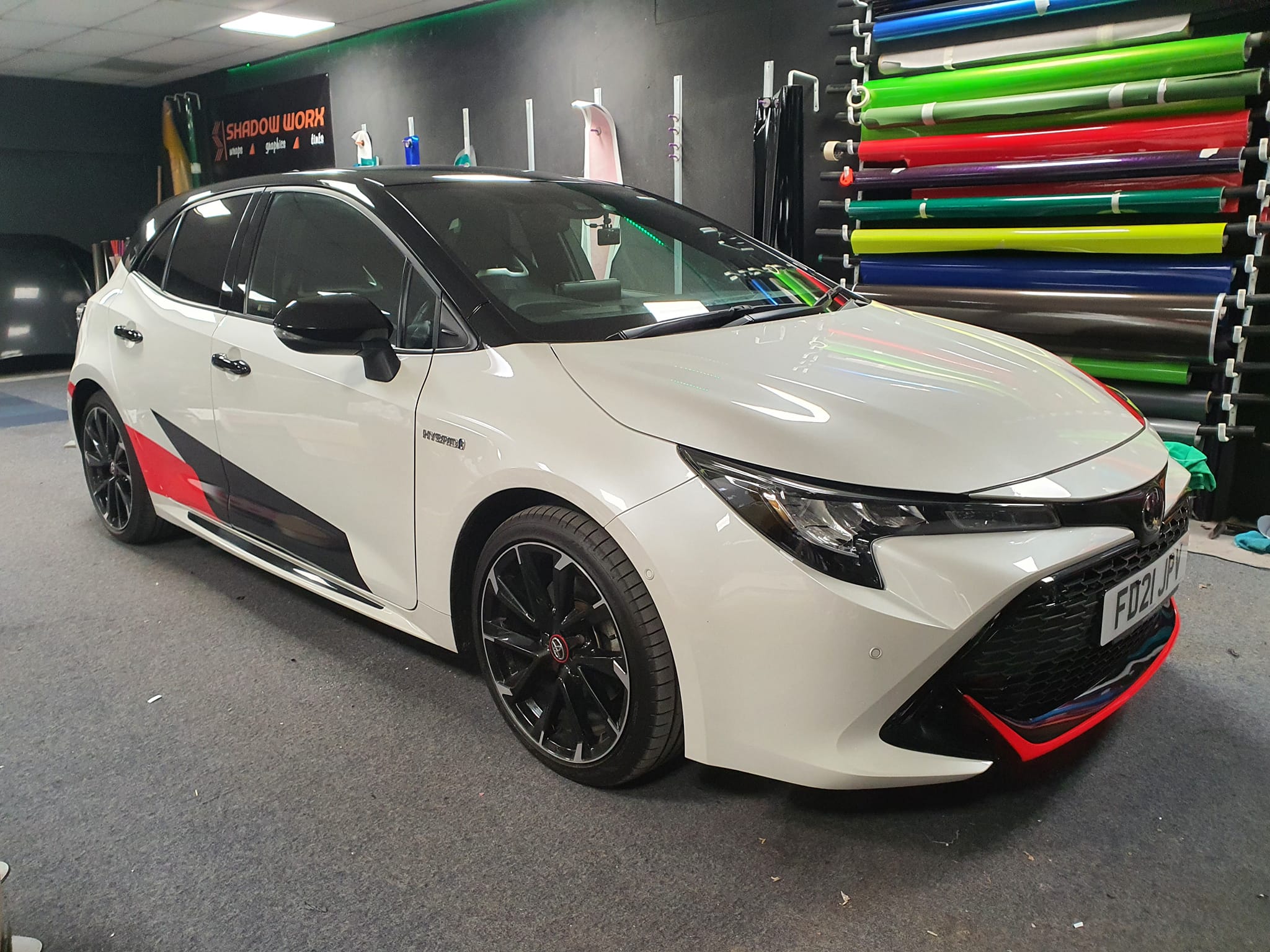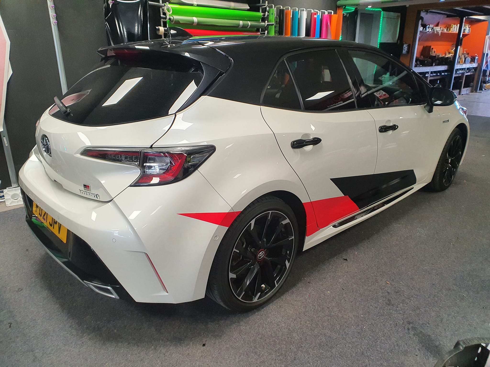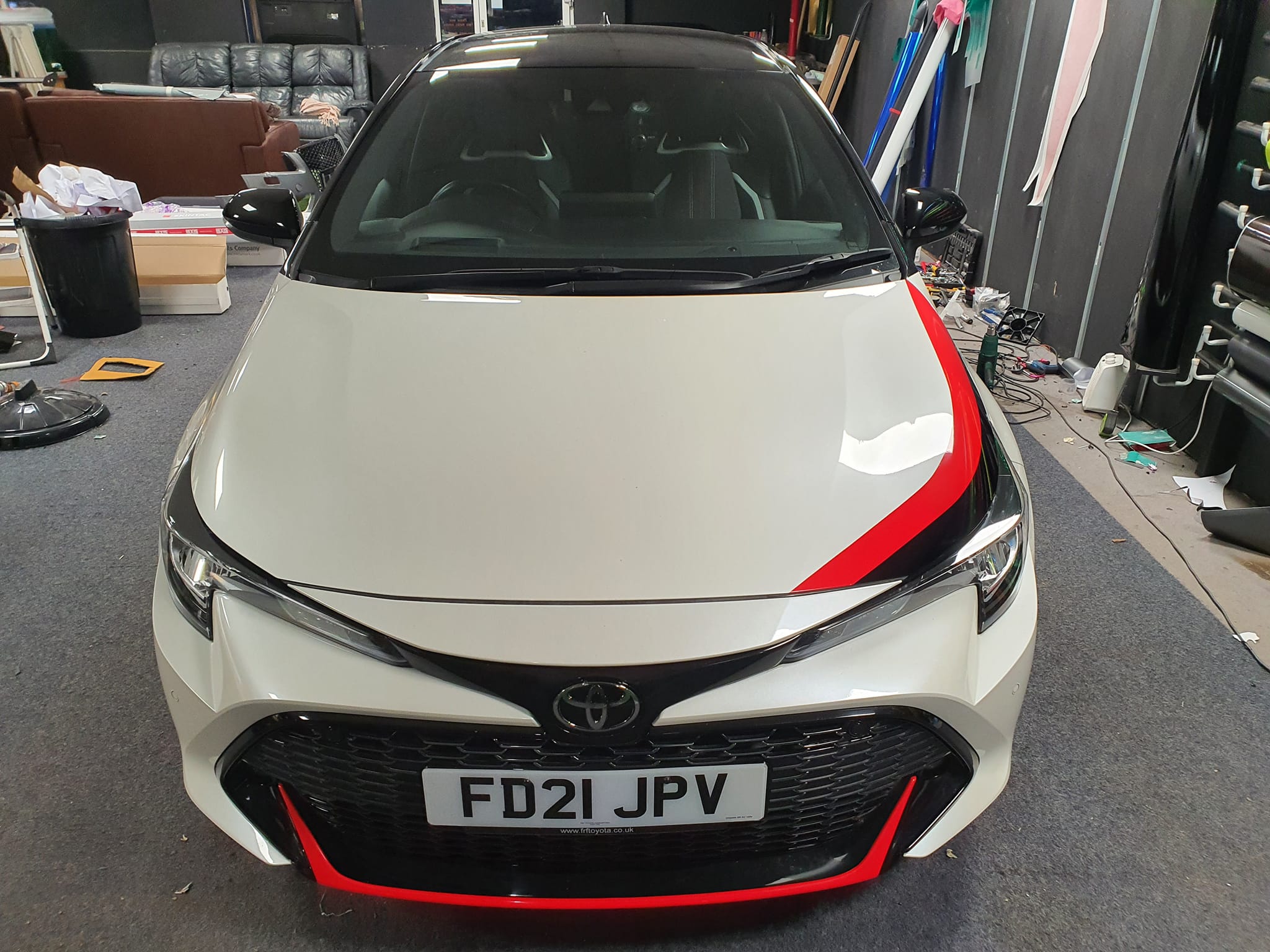 Gazoo racing inspired side stripes/triangles, bonnet stripes and front lip detail...