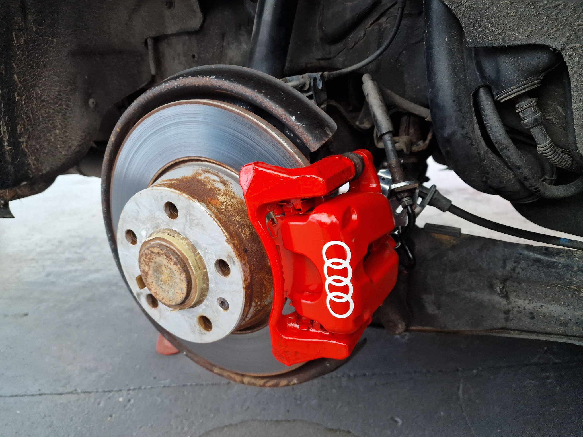 Red brake calipers and a 2 tone black custom made sunstrip for this Audi TT giving it a refresh...